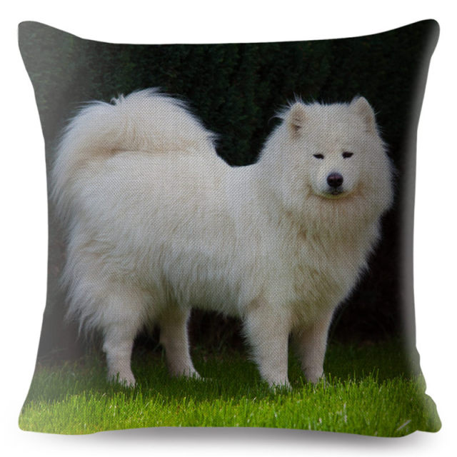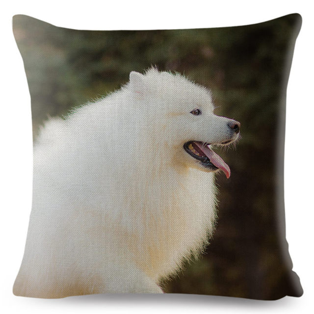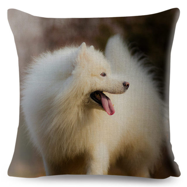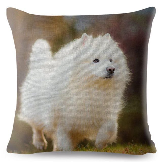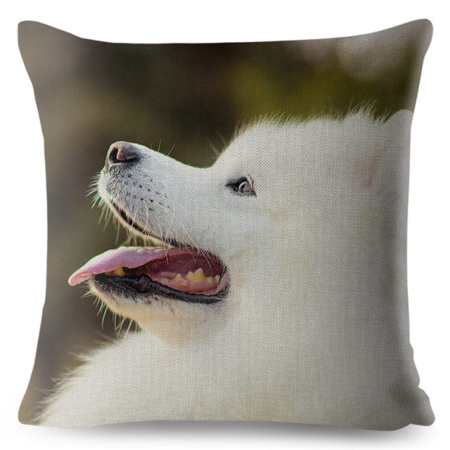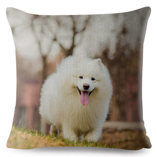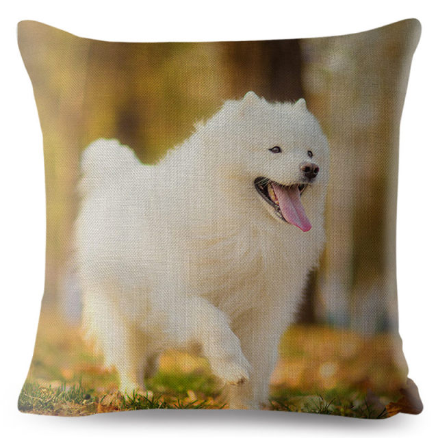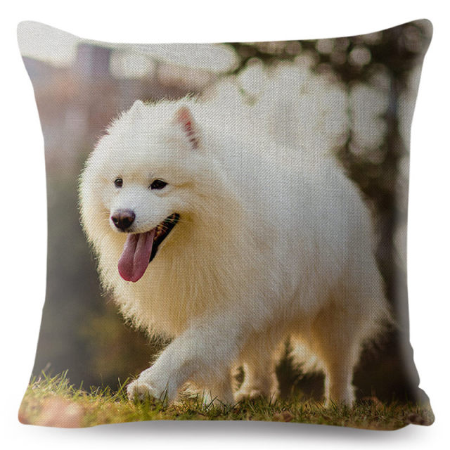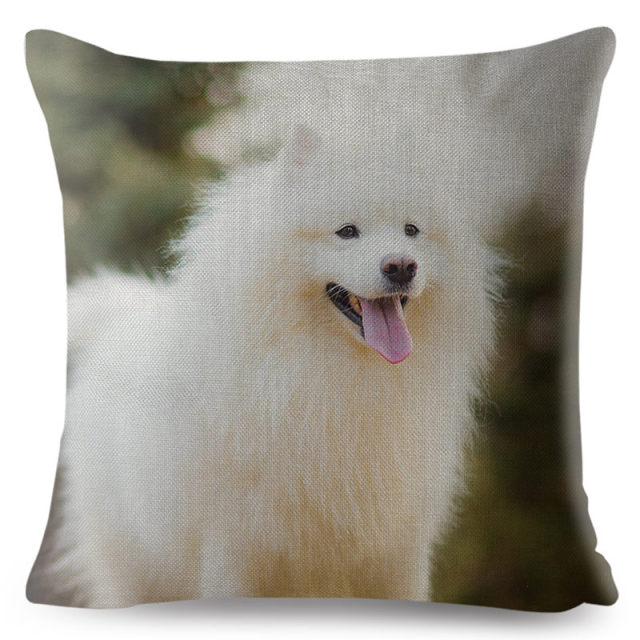 Cute Pet Dog Samoyed Print Throw Pillow Cover 45*45cm Textile Cushion Covers Linen Pillow Case Car Sofa Home Decor Pillows Cases