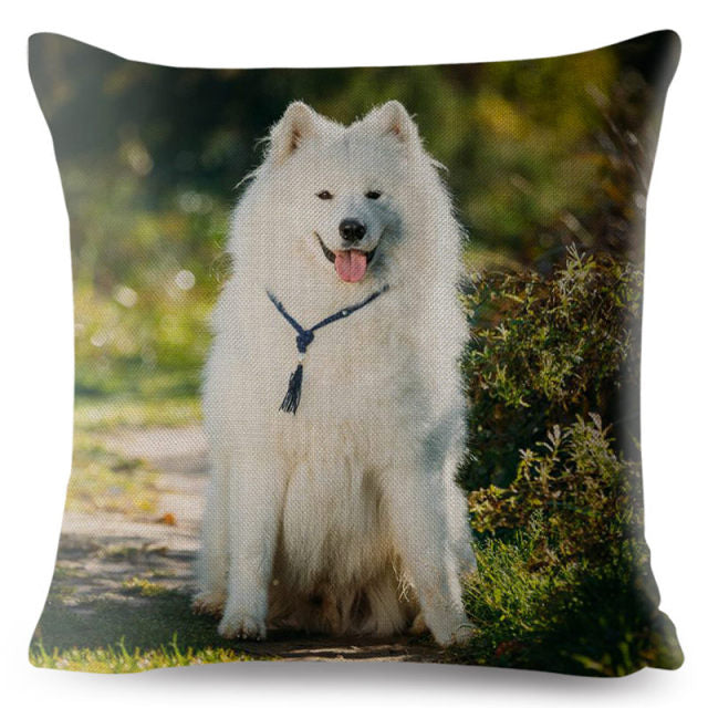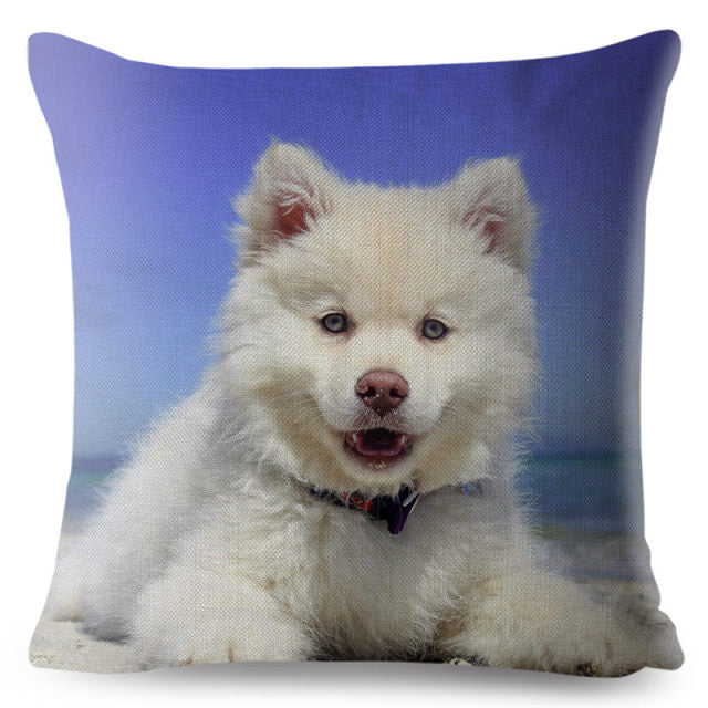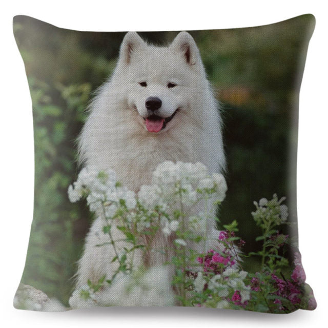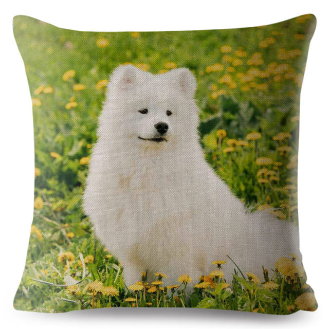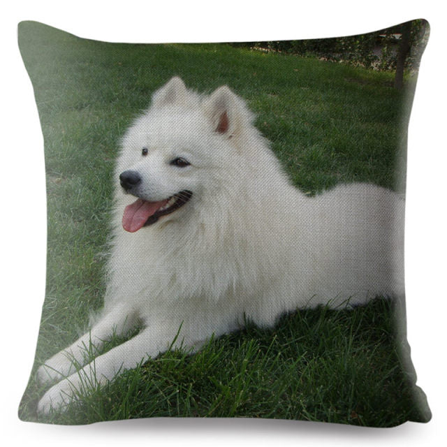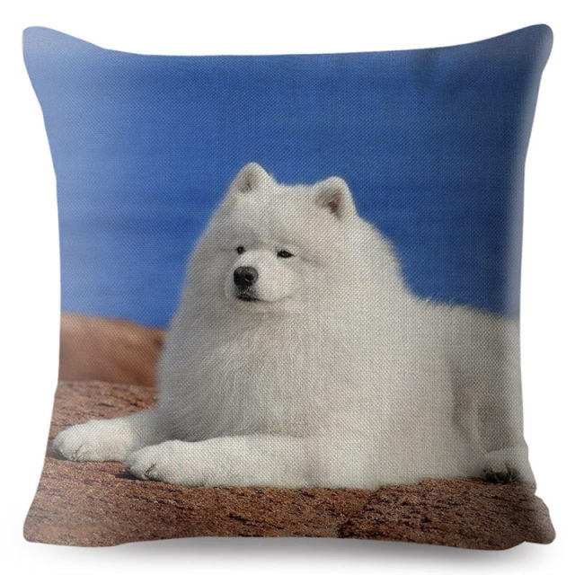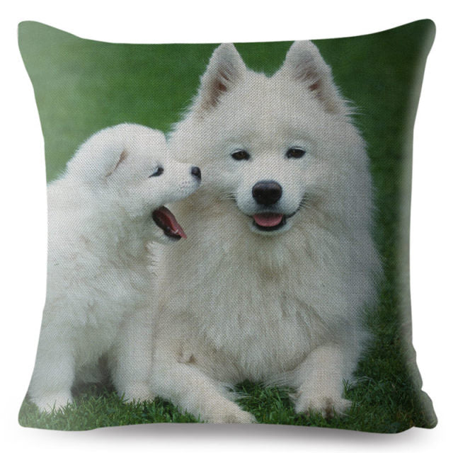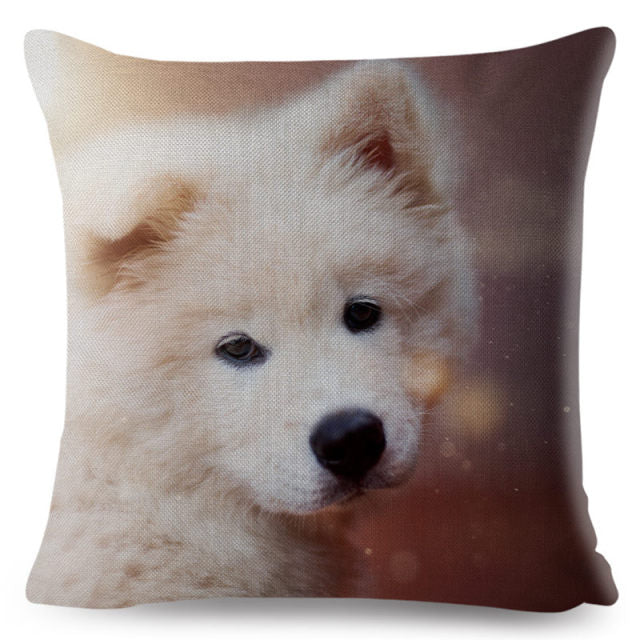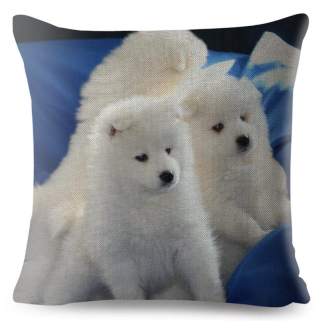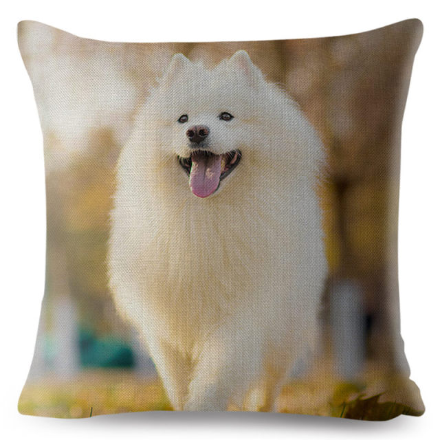 Cute Pet Dog Samoyed Print Throw Pillow Cover 45*45cm Textile Cushion Covers Linen Pillow Case Car Sofa Home Decor Pillows Cases