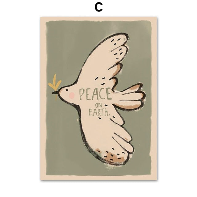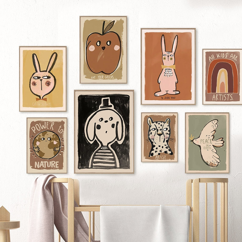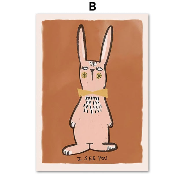 Cute Rabbit Leopard Dog Dove Rainbow Wall Art Canvas Painting Nordic Retro Posters And Prints Wall Pictures Baby Kids Room Decor