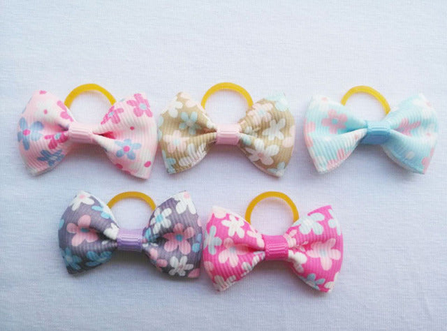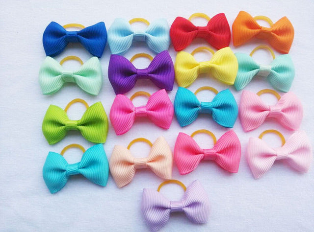(100 pieces/lot) Cute Ribbon Pet Grooming Accessories Handmade Small Dog Cat Hair Bows With Elastic Rubber Band 121 Colors