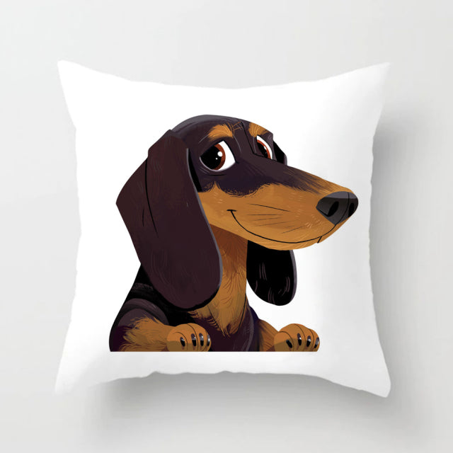 Dachshund Dog Cushion Covers Sausage Cute Cartoon Pet Bull Dog Decorative Pillow Covers Bedroom Sofa Home Decoration 45X45cm