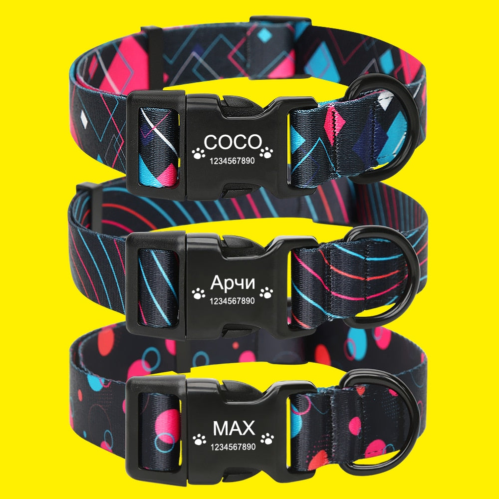 Designer Personalized Dog Collar Luxury Nylon Custom Dog Collar for Small Large Dogs Name Collars Accessories French Bulldog Pug