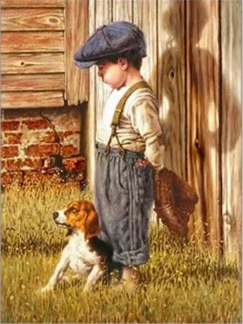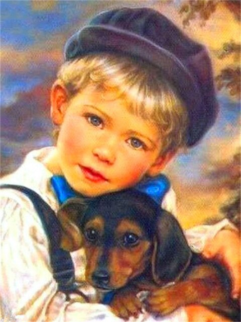 The theme of this diamond painting is a 5D DIY portrait, capturing the innocence and joy of a little boy and his beloved dog. The drill is 100% full square or round, ensuring precise and detailed results that will impress anyone who lays eyes on your finished masterpiece.