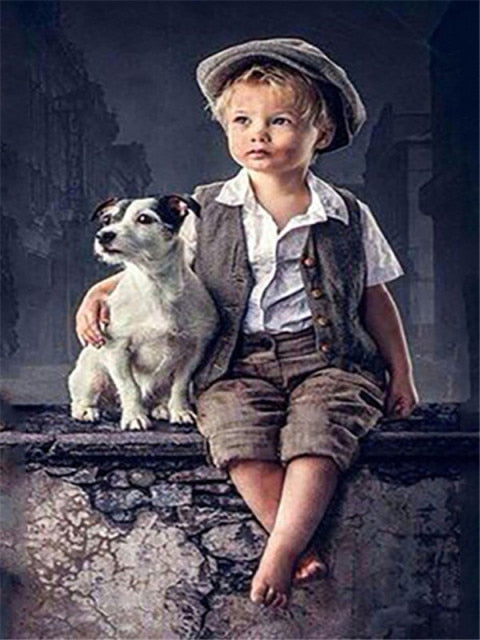 Enhance your home decor with this stunning 5D Diamond Painting kit featuring a heartwarming portrait of a little boy and his loyal dog. This kit is perfect for anyone who loves to engage in creative activities and create beautiful art pieces.