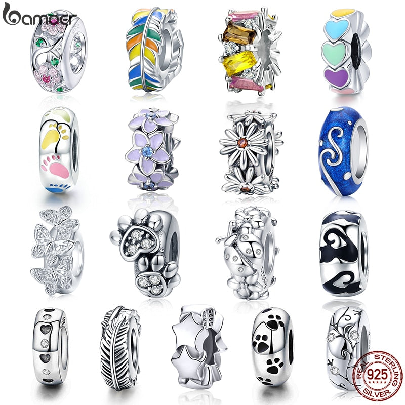 Authentic 925-sterling-silver Dog Animal Footprint Cat Heart LOVE Spacer Charm Fit Bracelet DIY Original SCC594