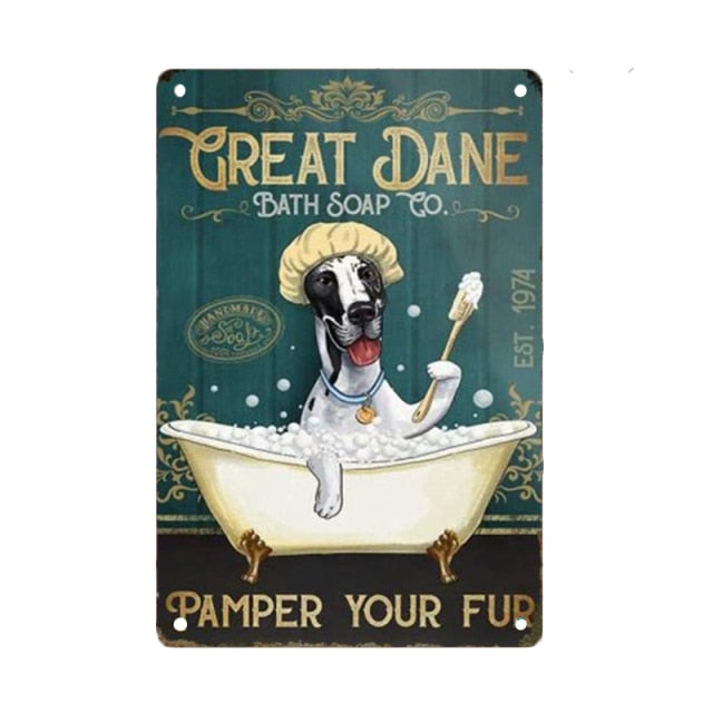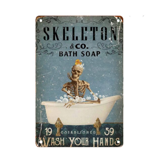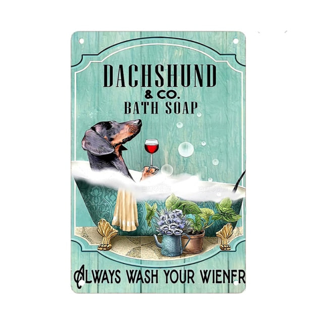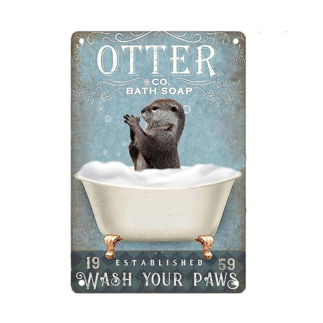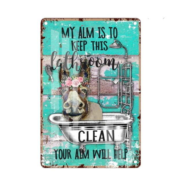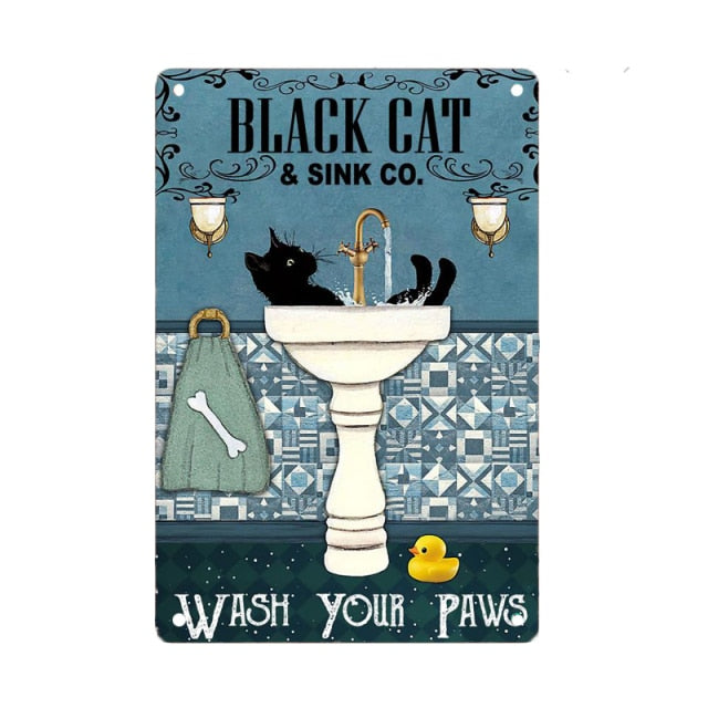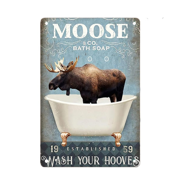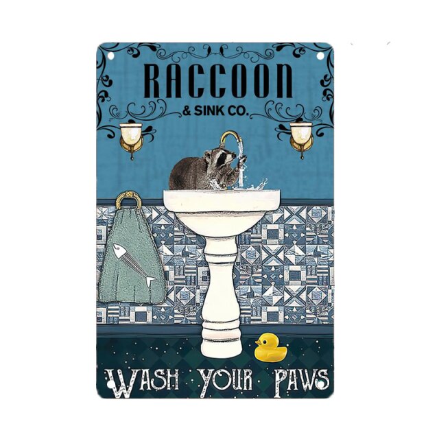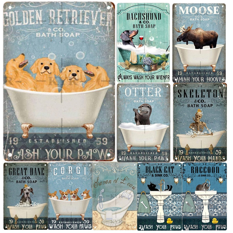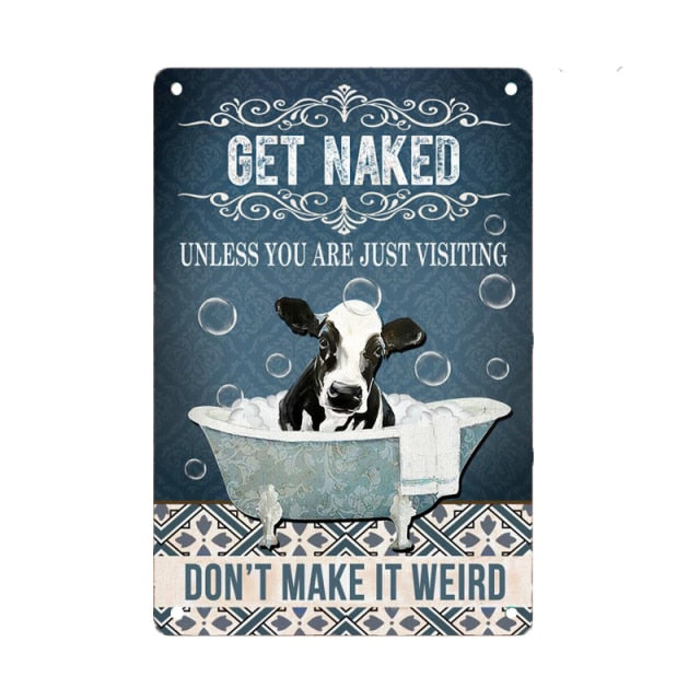 Cow Dog Raccoon Black Cat Bathtub Metal Wall Poster Bathroom Toilet Room Decor Tin Iron Murals WC Of Bar Club Restaurant Slogan
