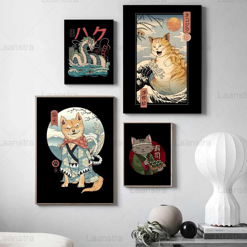 Style Comics Poster and Print Shiba Inu Dog Cat Dragon Canvas Art Painting Wall Picture Home Dining Room Decor Mural