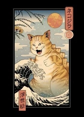 This is a canvas print of a poster featuring a Shiba Inu dog, cat, and dragon in a Japan style animation. It is not a smart device and does not come with a frame. It is made with waterproof ink and spray painting techniques on canvas material. It is customizable and the model number is CP4780.