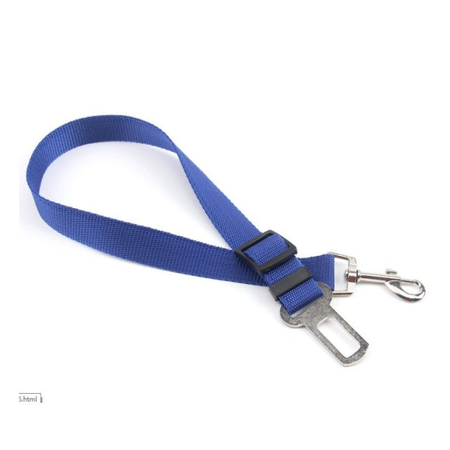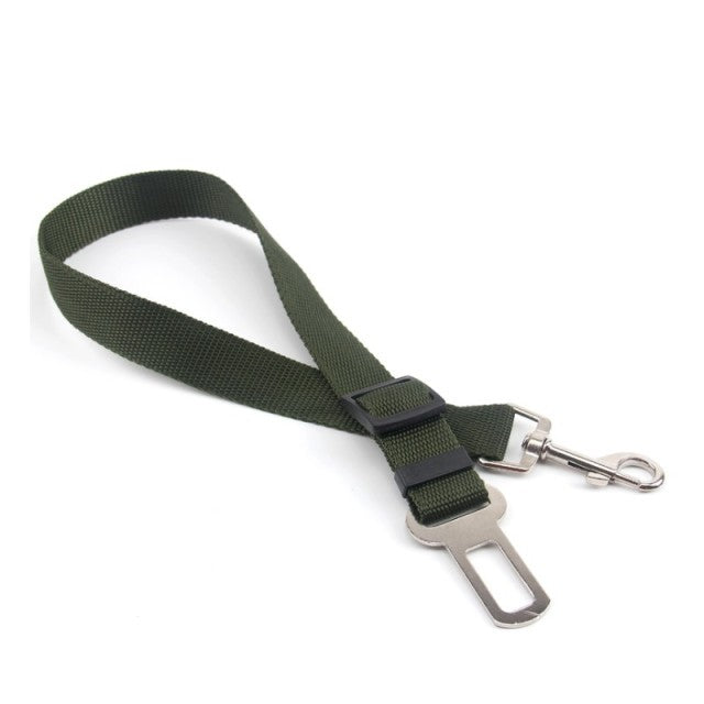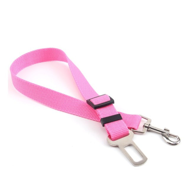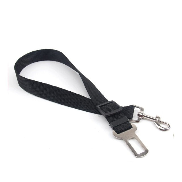 An adjustable nylon seat belt for dogs and cats to ensure their safety while in a car. This seat belt is suitable for all seasons and has a solid pattern. It features a breakaway and quick release mechanism.