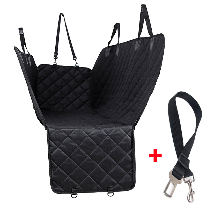 A dog car seat cover made of Oxford cloth that can be used in any season. It measures 147cm in length and 137cm in width, and weighs 1.5kg. It also has a zipper and can be used as a pet carrier or hammock.