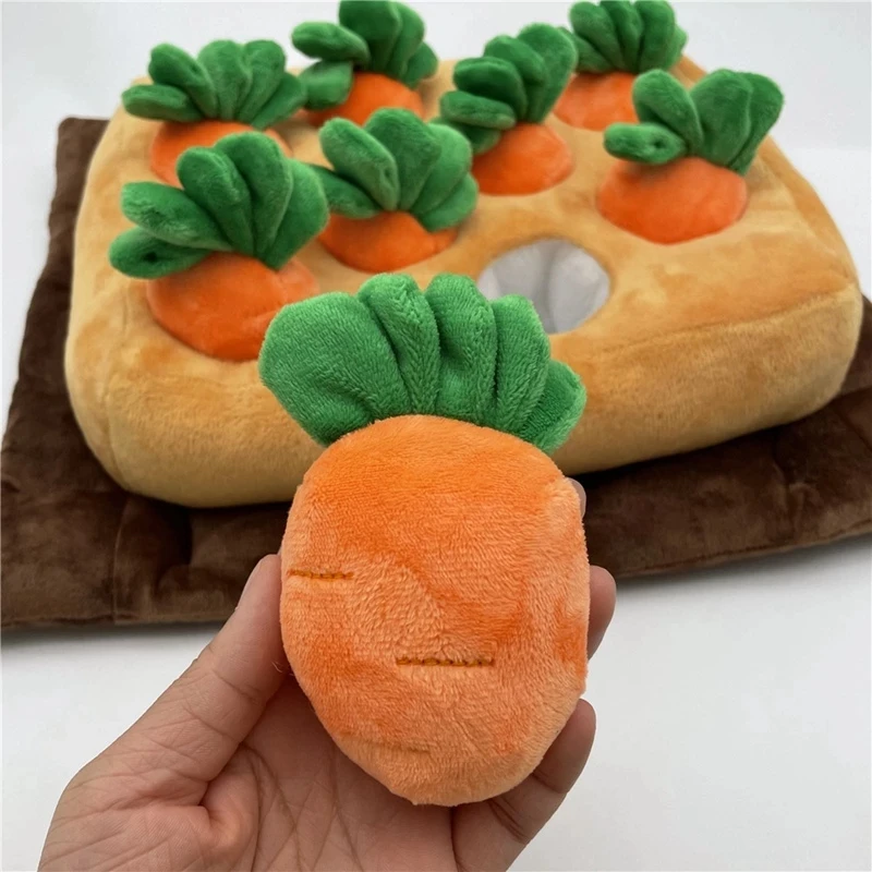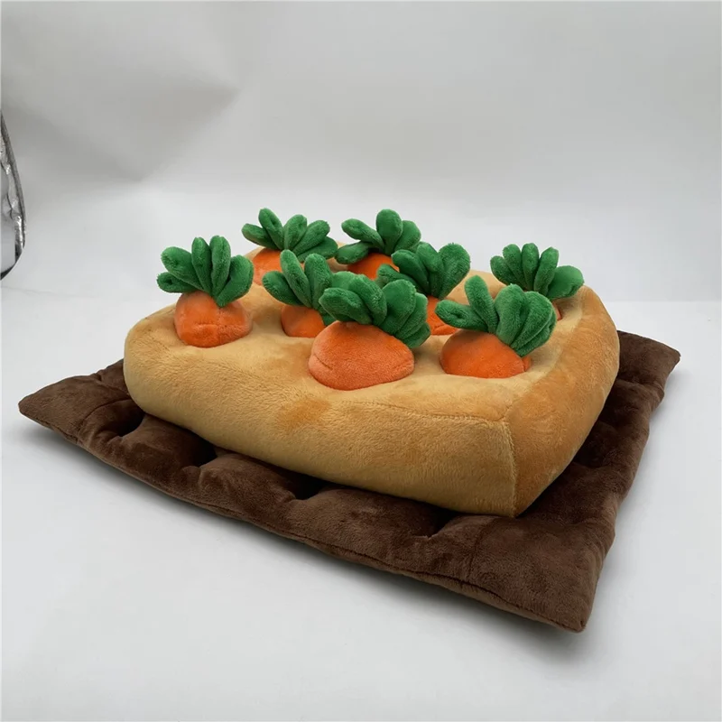Keep your dog entertained for hours on end with our Dog carrot plush toy! You can play with this carrot-pulling vegetable field mat with your pet, increasing the interaction between you and your pet and making your relationship closer. The exterior of the product is made of high-quality crystal cotton soft fabric, and every part of the interior is fully filled. High resilience, cotton not easy to fall out of it, not afraid of squeezing. Improve your pet’s comfort while playing. The interesting styling of carrots adds fun to your pet’s life. Even if you are not accompanied by your pet, your pet can play happily on its own. It is the perfect gift for your paw pal! Buy now!