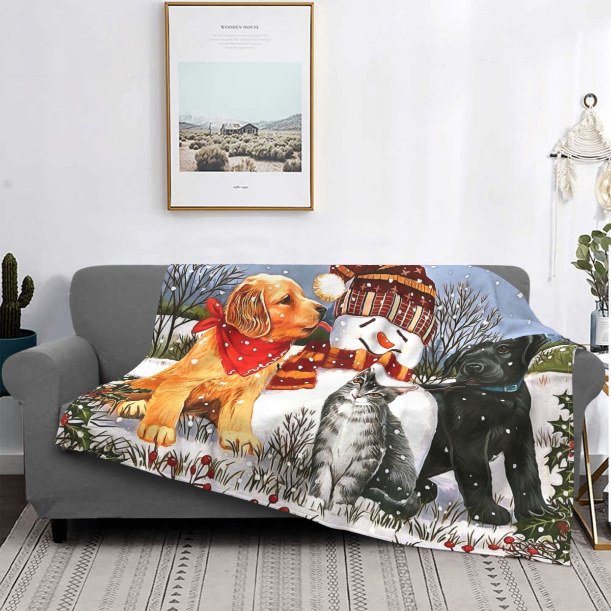 Dog Cat Snowman Blankets Velvet Spring Autumn Merry Christmas New Year Breathable Super Warm Throw Blankets for Bed Bedspreads