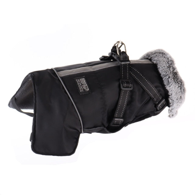 Large Dog Clothes with Harness Winter Warm Fur Collar Waterproof Reflective Padded Dog Jacket Small Big Dog Coat French Bulldog