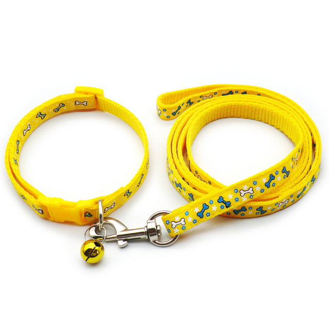 Cat Dog Collar Harness Cartoon Style Leash Adjustable Bone Print Pet Traction Cat Kitten Halter Collar Walking Lead Belt