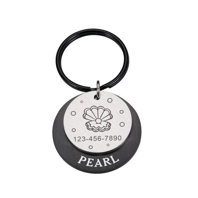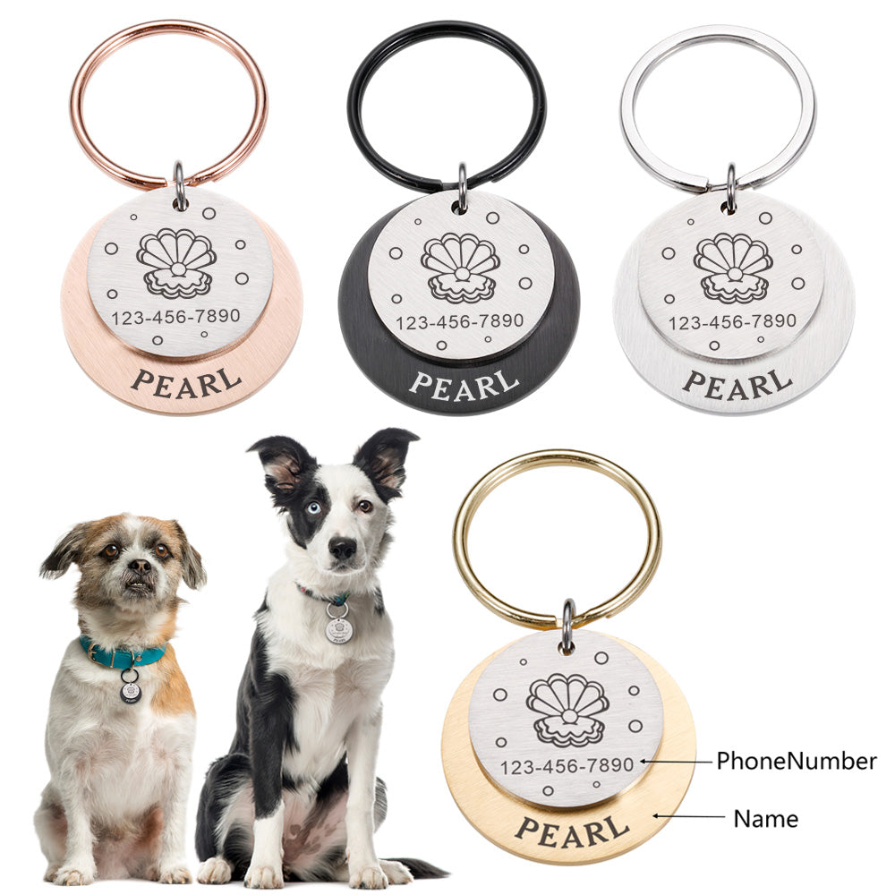 A customizable pet collar name tag made of stainless steel. It is suitable for dogs and cats and can be used in all seasons. The tag is solid and features personalized engraving, as well as call reminder. It is a pet supply accessory and can be used as a dog name tag.