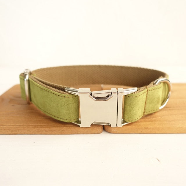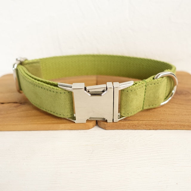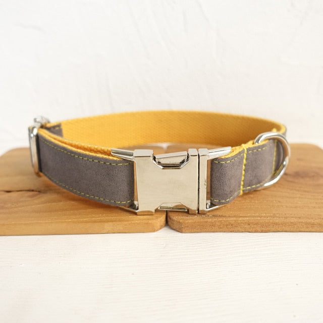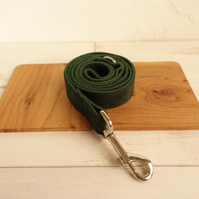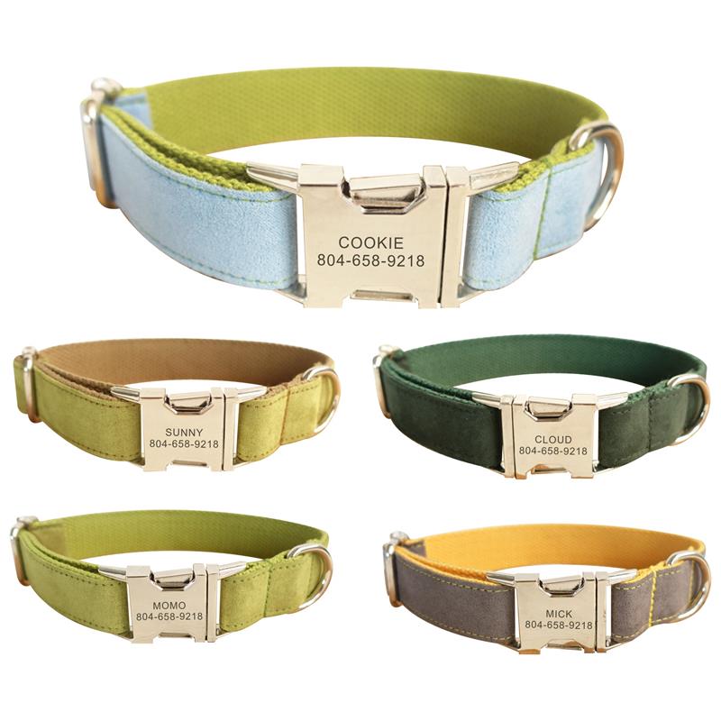 Personalized Dog Collar Customized Pet Collars Free Engraving ID Nameplate Tag Pet Accessory Velvet Puppy Collars Leash Set