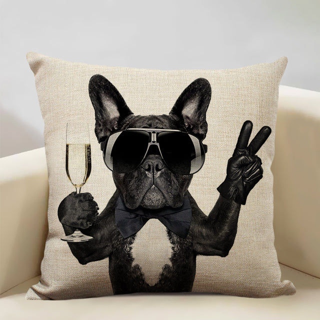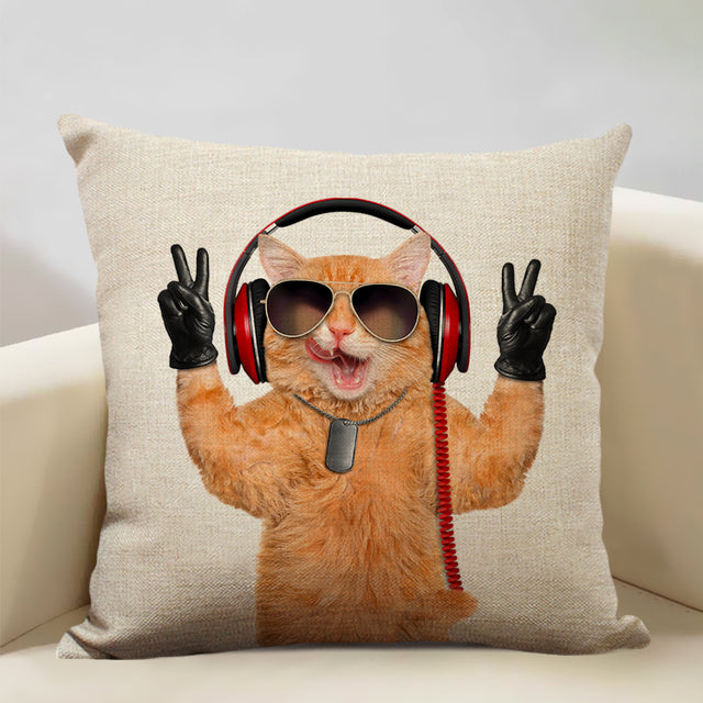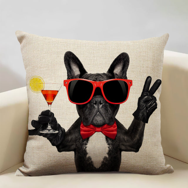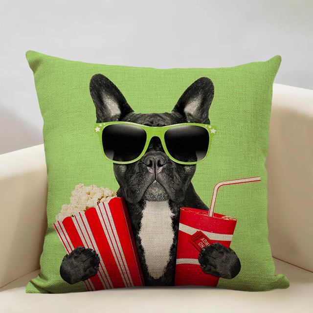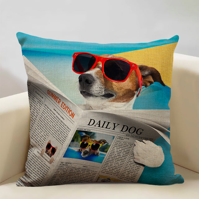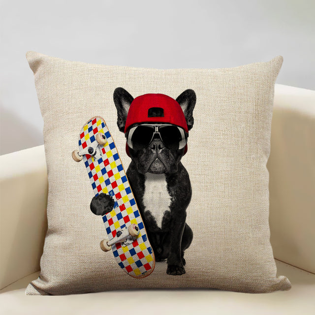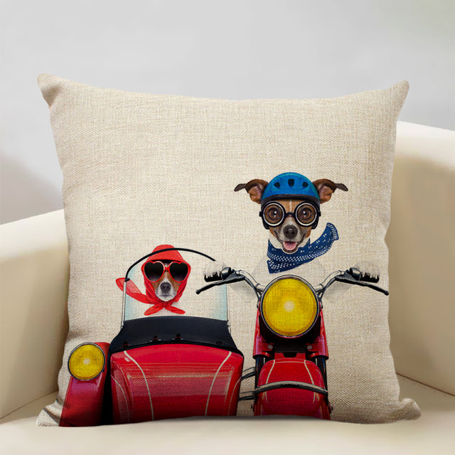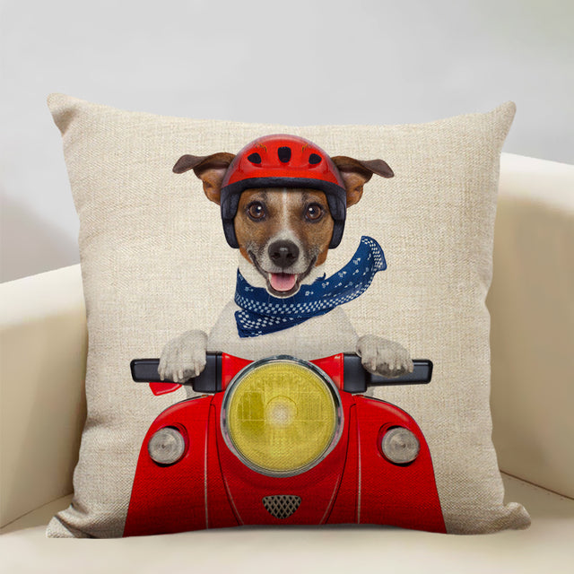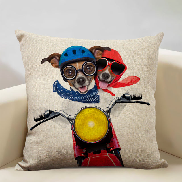 Cute Animal Cushion Cover Dog Riding Motorcycle Design Home Sofa Decorative Pillow Cover Seat Pillow Cover 45x45cm Linen