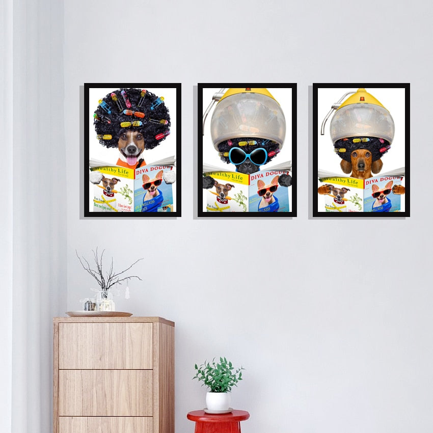 Don't miss out on this one-of-a-kind Dachshund Sausage Dog Hairdressers Art Canvas Painting. Order yours today and bring a touch of humor and charm to your home or give a memorable gift to someone special.