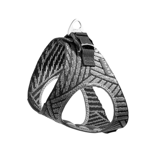 Made of high-quality fiber material, this harness is not only durable but also incredibly comfortable for your furry friend. The striped pattern in a stylish gray color adds a touch of fashion to your dog's ensemble.
