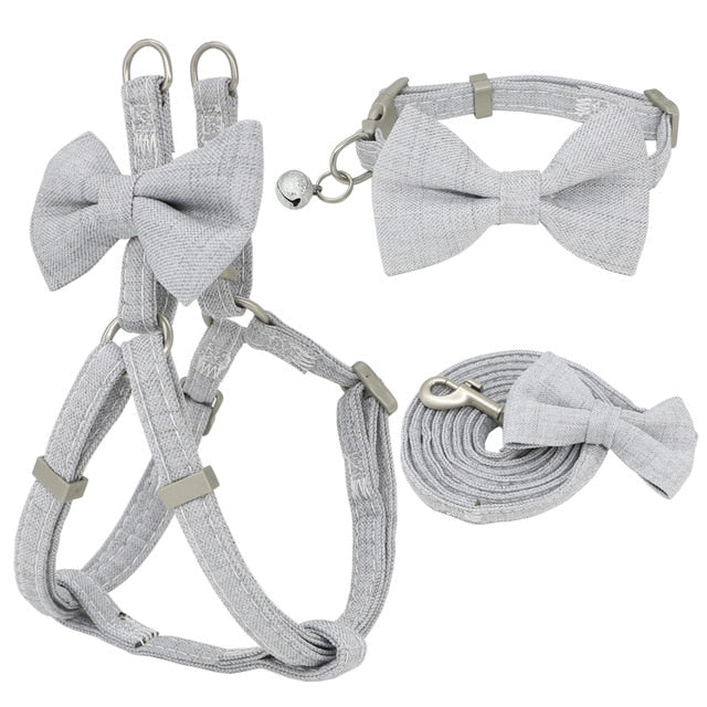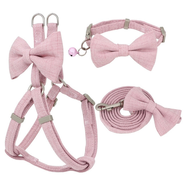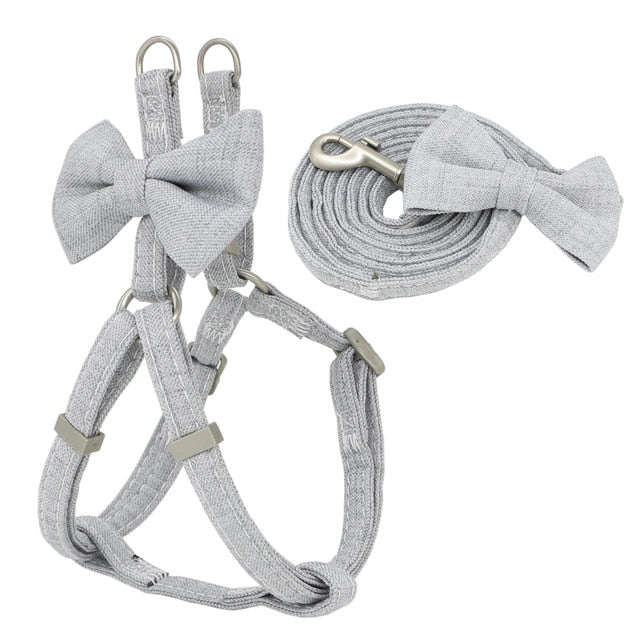 Dog Harness Leash Collar Set Adjustable Soft Cute Bow Double Layer Dog Harness for Small Medium Pet Collar Leash Outdoor Walking