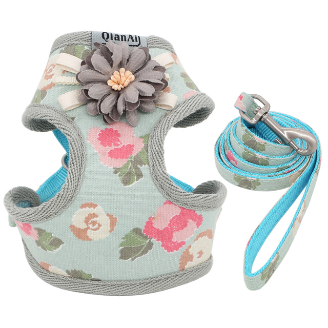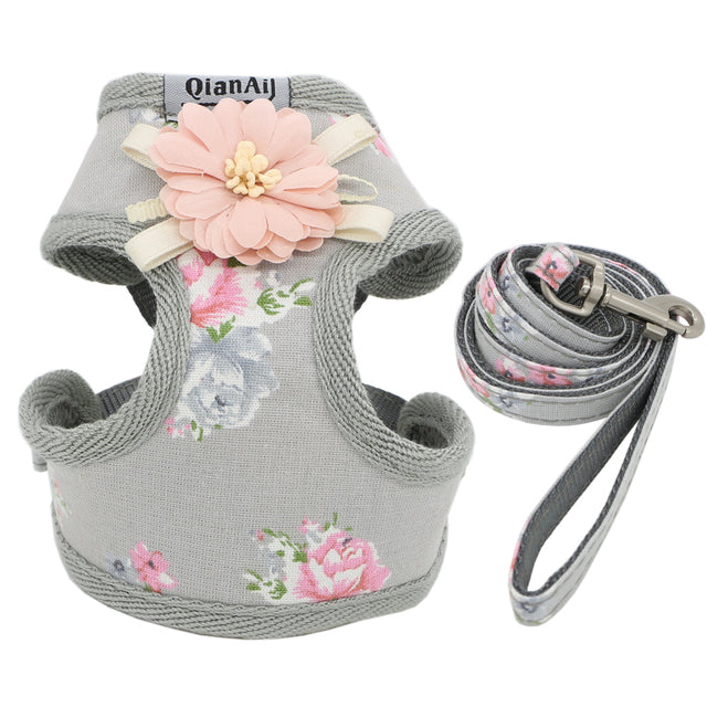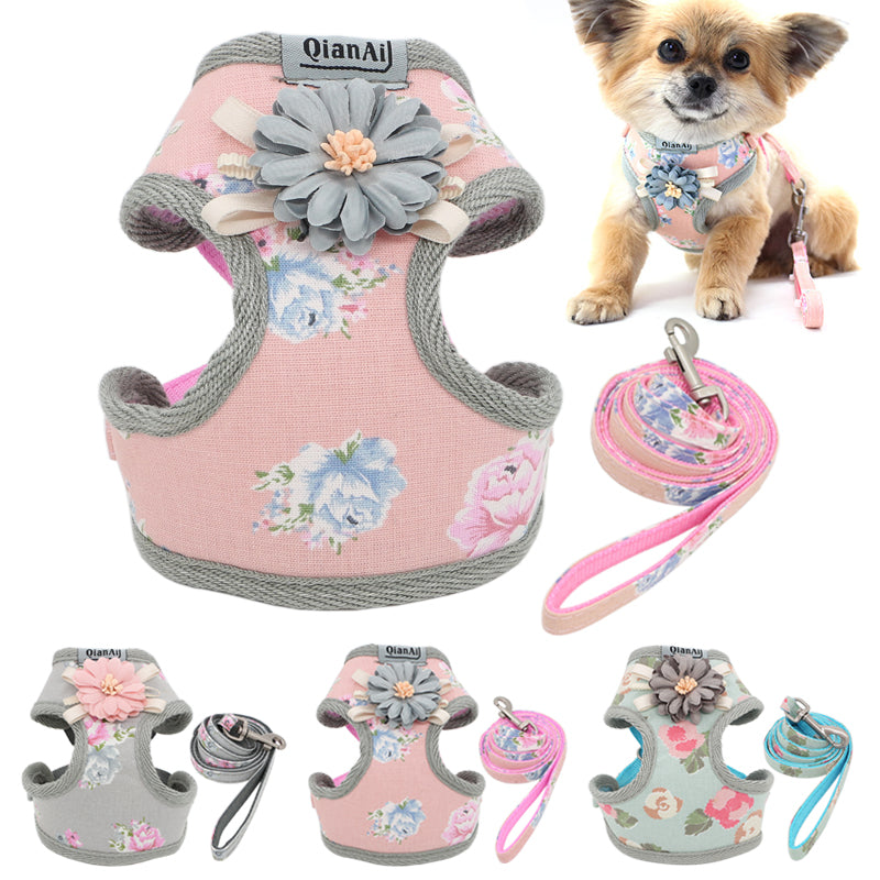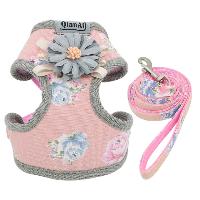 Dog Harness Leash Set Fashion Lovely Floral Breathable Adjustable Cat Harness Vest for Small Medium Dogs Cats Leashes Outdoor
