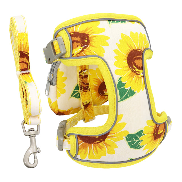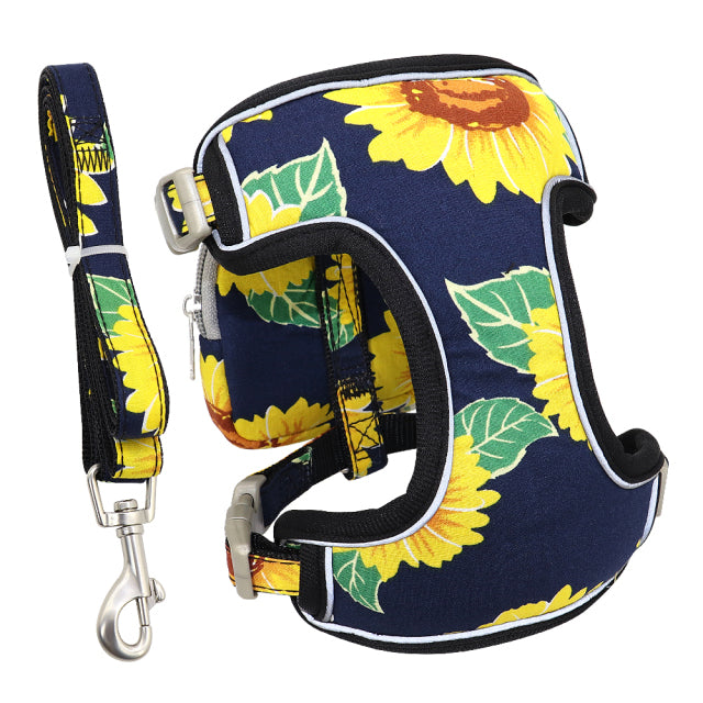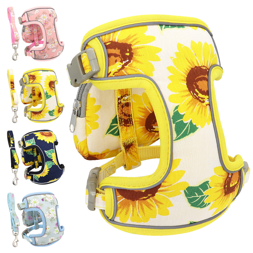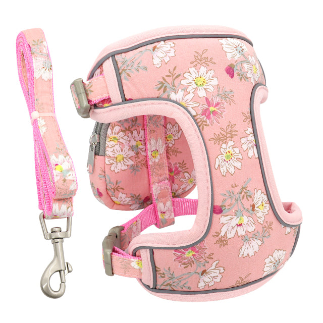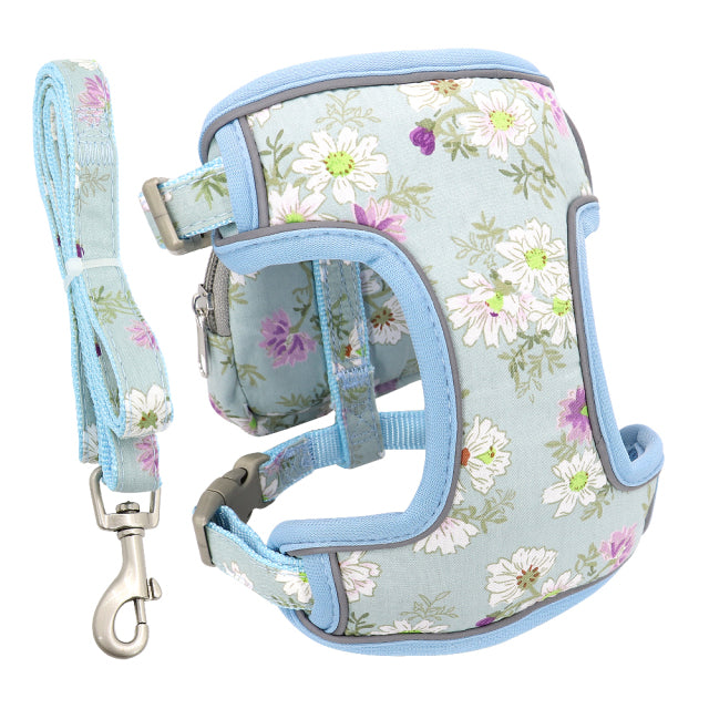 Puppy Dog Harness With Leash Nylon Dogs Cat Vest Harness Pretty Flower Print Snack Bag For Cats Small Medium Dogs