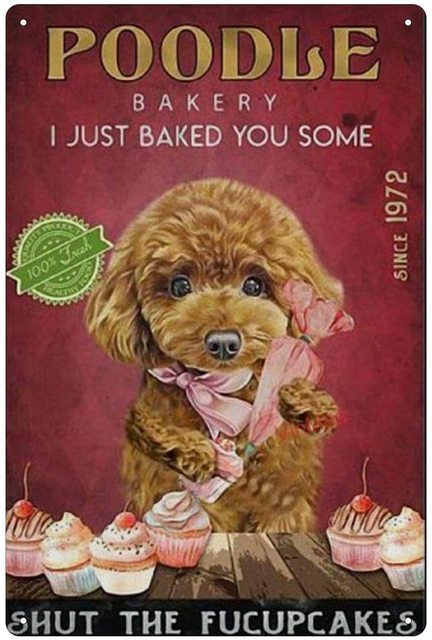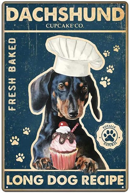 Overall, this Dog Making Cake Metal Tin Sign is a must-have for any dog lover or fan of retro decor. Its unique design, customizable options, and versatility make it a perfect choice for adding a touch of charm to any space. So why wait? Bring home this delightful metal sign and let it be the centerpiece of your wall decor.