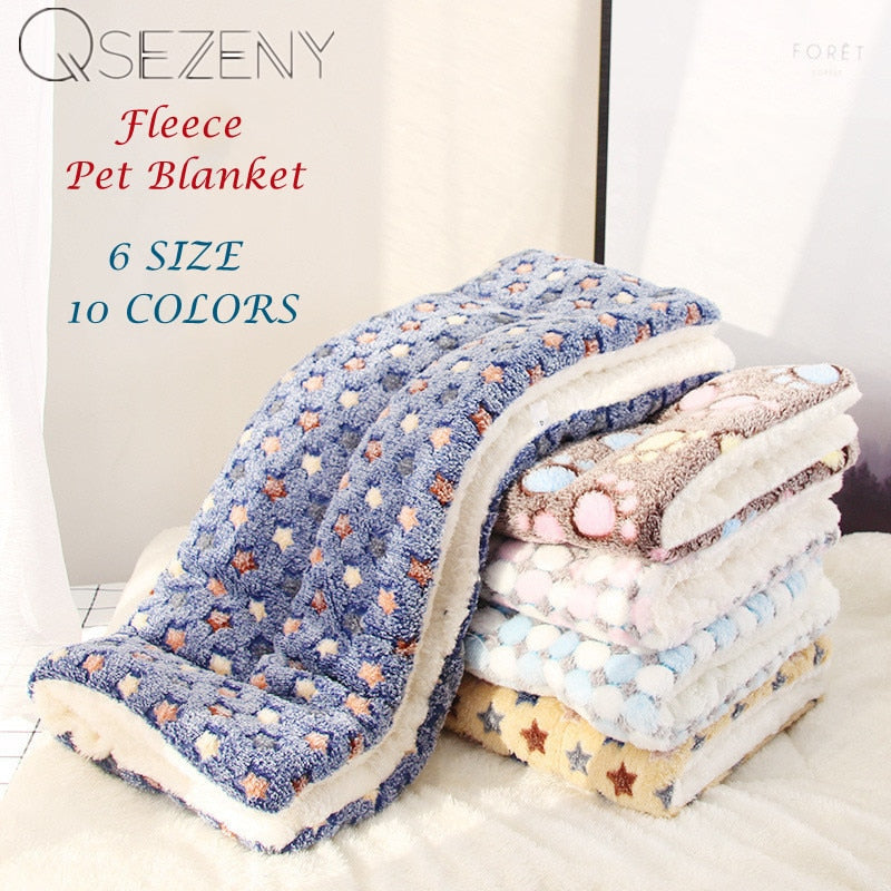 A cozy and comfortable bed for your furry friend? Look no further than our Dog Mat Dog Bed Thickened Pet Cat Soft Fleece Pad Blanket Bed Mat Cushion! Made from plush material, this bed is perfect for keeping your pet warm and comfortable. It's also portable and washable, making it easy to take with you on the go and keep clean. Available in a variety of colors and patterns, including blue and yellow stars and pink and blue rounds. This bed is eco-friendly and perfect for any dog or cat. Whether you're looking for a pet mat, pet bed, pet blanket, or pet pad, this product is sure to meet all your needs. Don't wait, order yours today!
