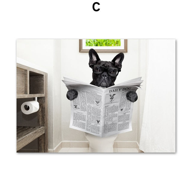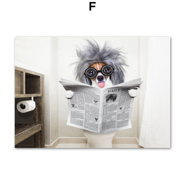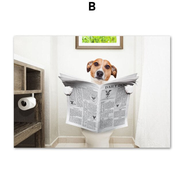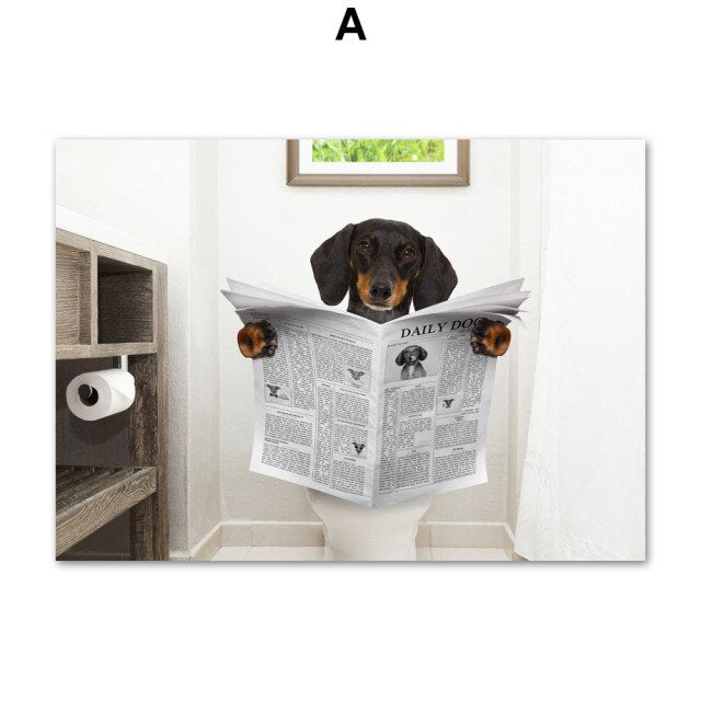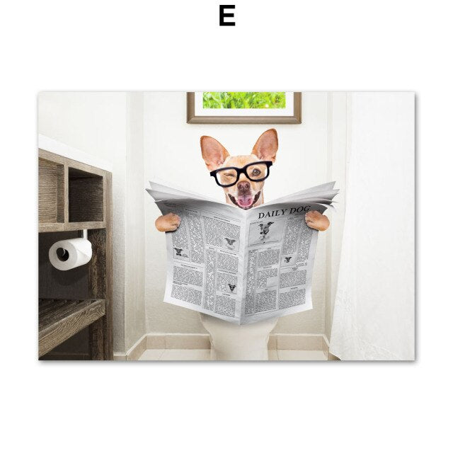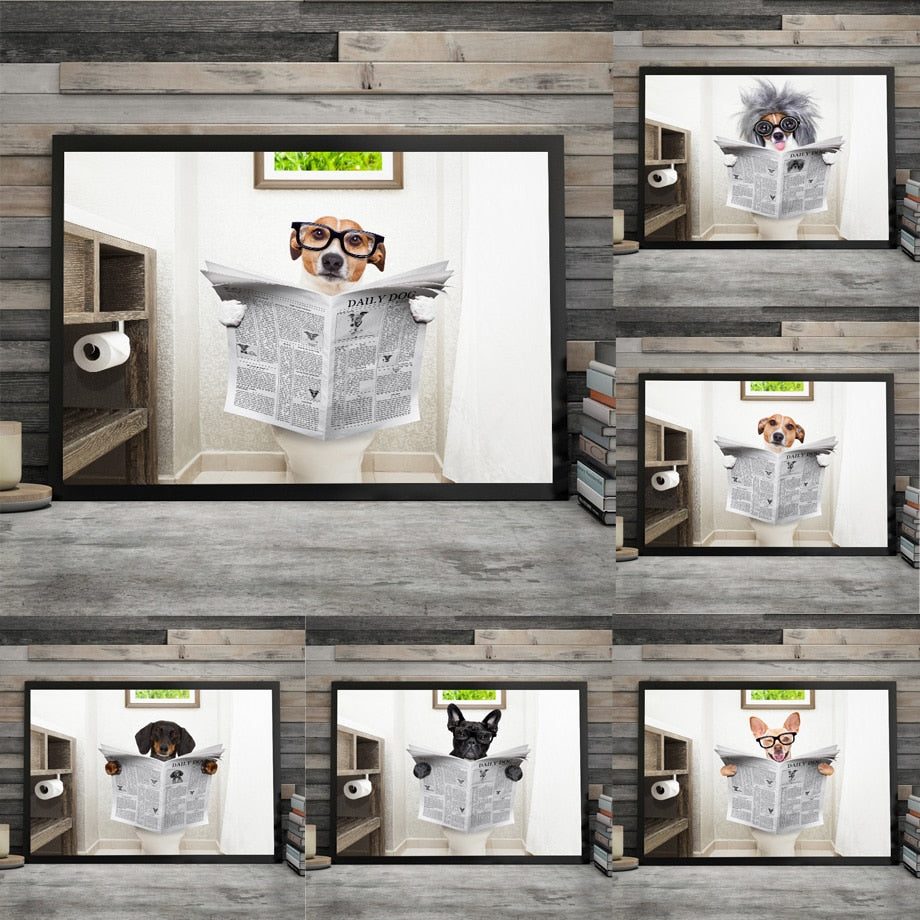 Dog newspaper Toilet Bathroom Wall Art Canvas Painting Nordic Posters And Prints Wall Pictures For Living Room Restroom Decor