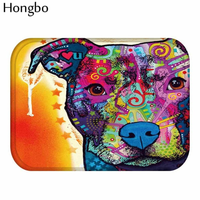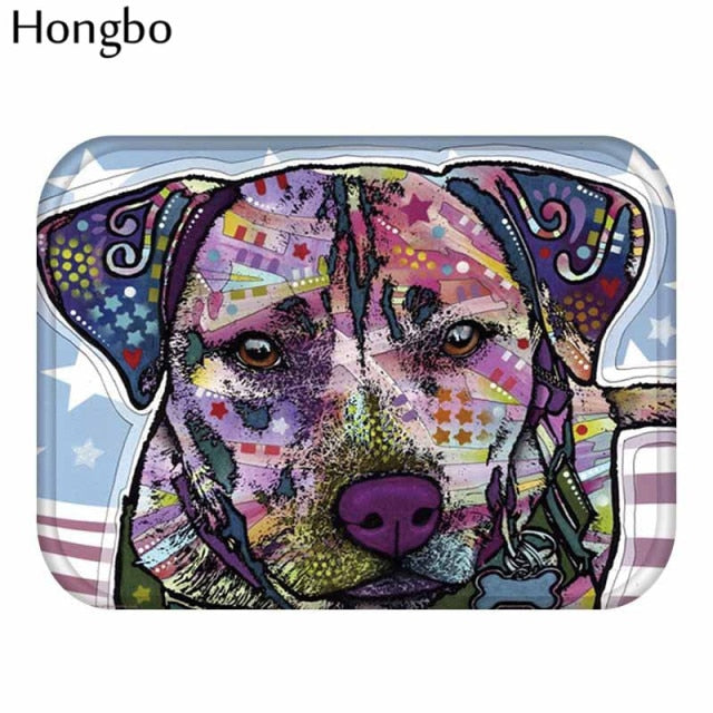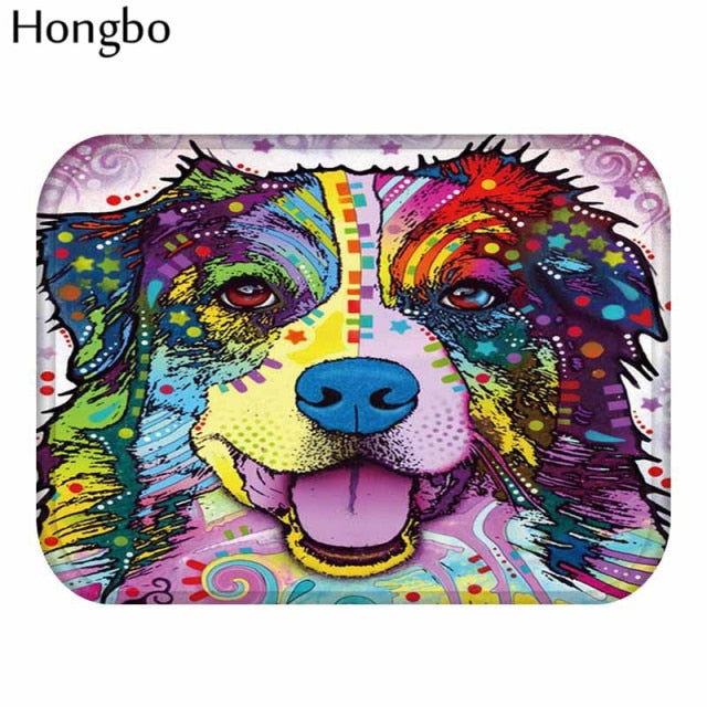 New Cartoon Style Lovely Dog Painting Dogs Print Colorful Portrait Carpets Anti-slip Floor Mat Outdoor Rugs Animal Front
