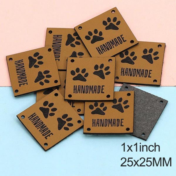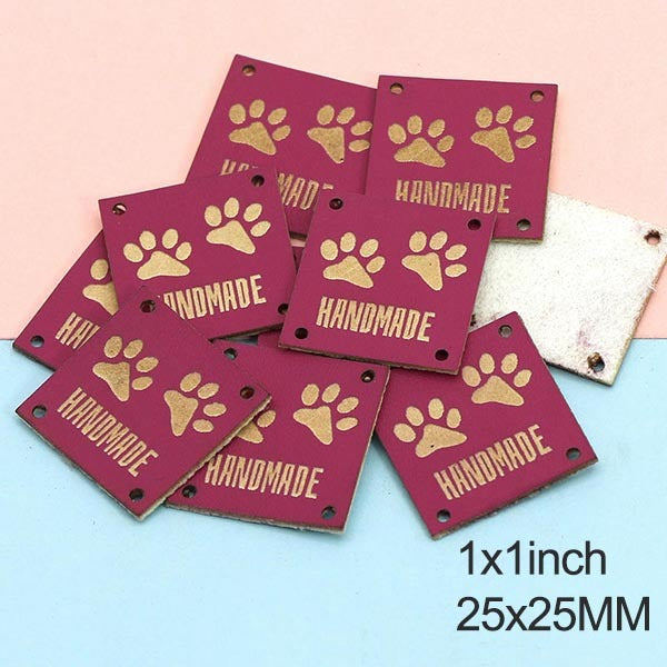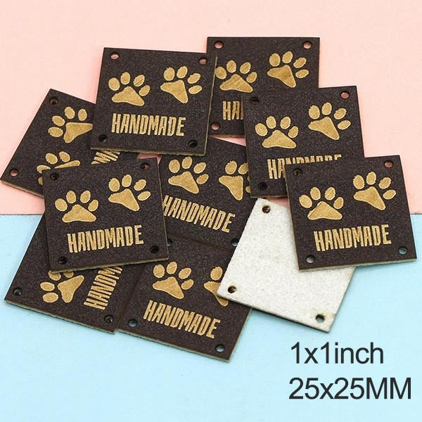 Don't miss out on this opportunity to add a touch of elegance and uniqueness to your clothing, shoes, and bags. Order your set of 20 handmade leather tags with dog paw prints today and unleash your creativity!