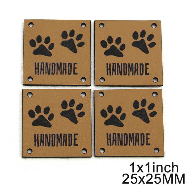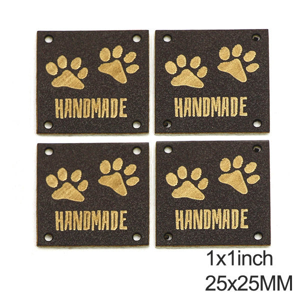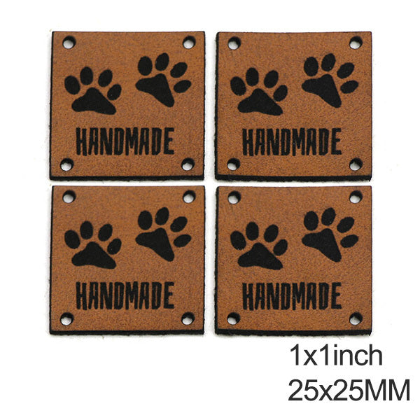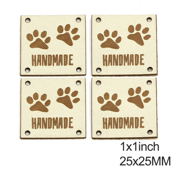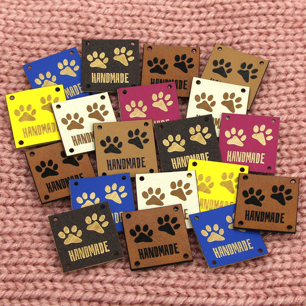 20 Pieces Dog Paw Leather Tags Handmade Label For Hats Knitted Footprint Hand Made Tags For Clothes Sewing Accessories 25x25MM
