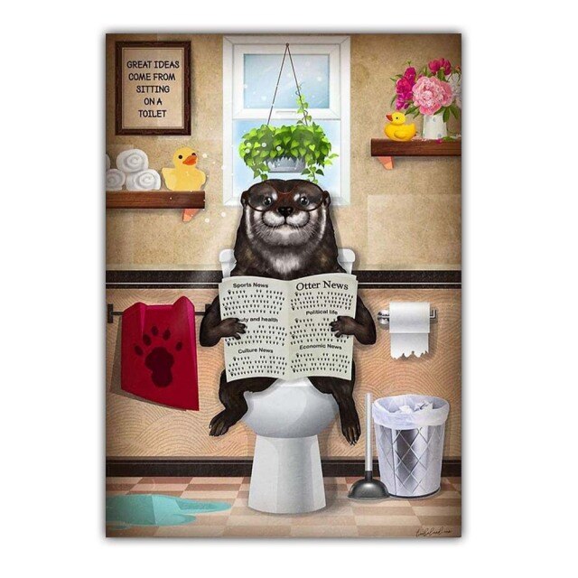 Retro art animal canvas painting funny dog reading newspaper Wall Art Poster office living room bathroom home decoration mural
