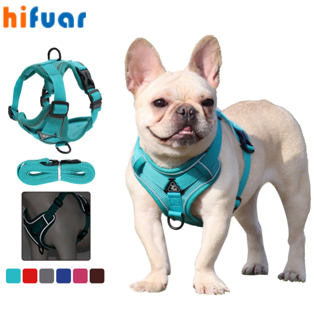 Dog Reflective Harness Nylon Pet Leash No Pull Adjustable Medium Large Naughty Dog Vest Safety Vehicular Lead Walking Running
