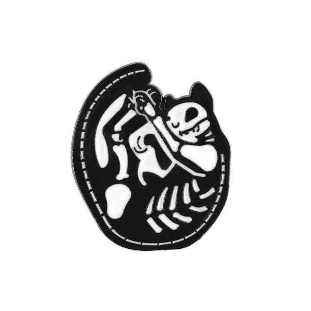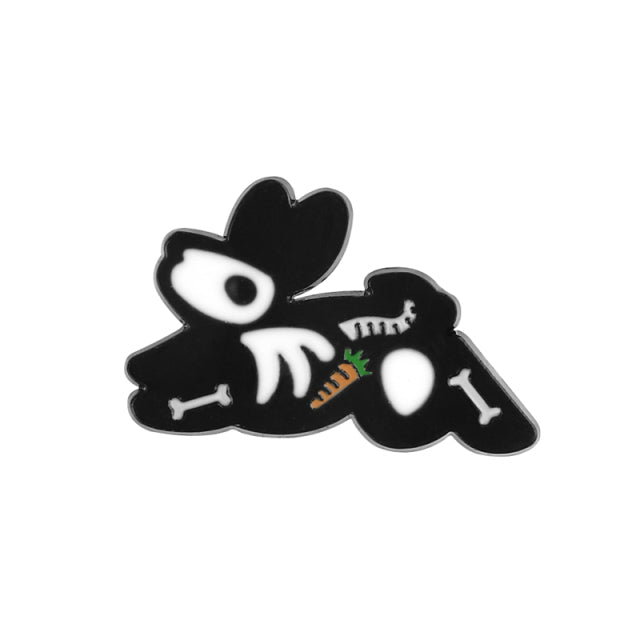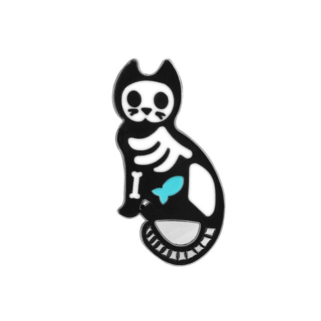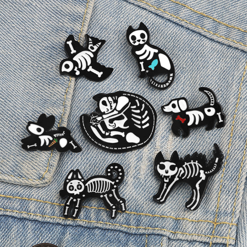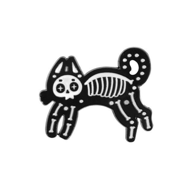 Animal Skeleton Brooches Cat Dog Skull Pins Punk Gothic Dark Badges Black White Metal Enamel Pin Lapel Bag Clothes Jewelry Gifts