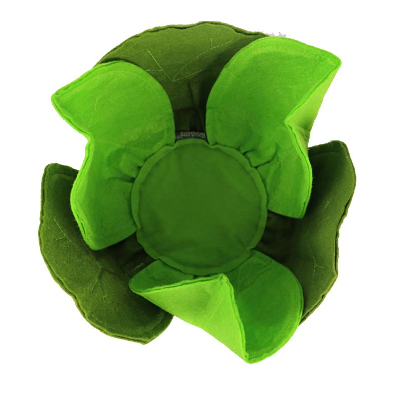 A snuffle mat for dogs made of felt cloth that comes with detachable fleece pads. The mat is designed to be a nosework puzzle toy that can help relieve stress for French Bulldogs and other small to medium-sized pets. The color of the mat is green and the size is 32*32cm. It is classified as a chew toy.