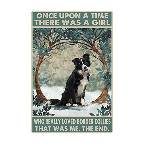 Dog Tin Sign, Border Collie in The Snow Poster, Bar Hotel Art Wall Decoration Plaque 8 Inch X 12 Inch.