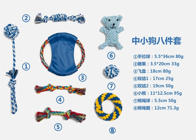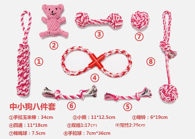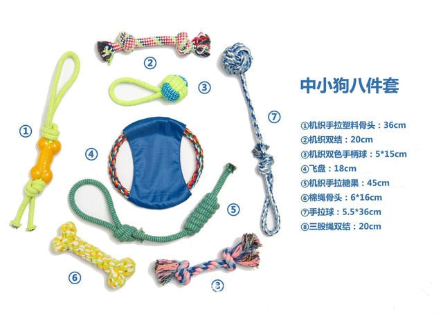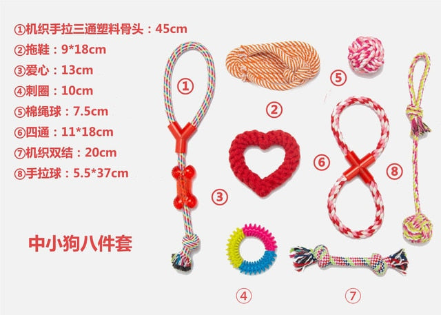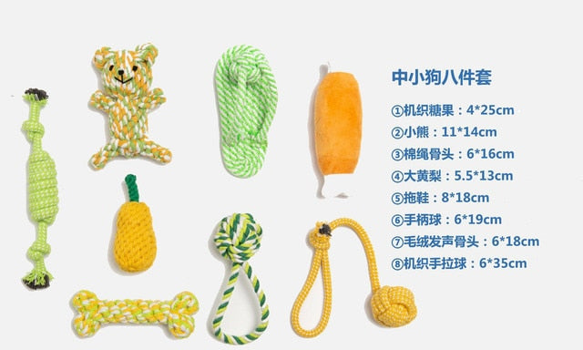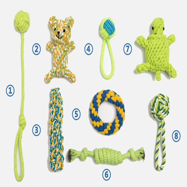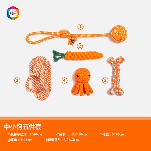 This set of chew toys is suitable for all sizes of dogs, including puppies, small dogs, and large dogs. Made from high-quality cotton, these toys are durable and built to withstand even the toughest chewers.