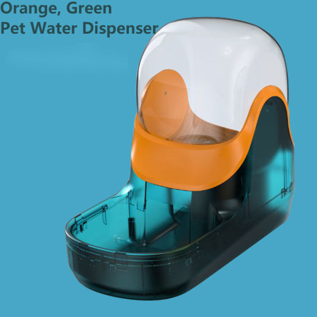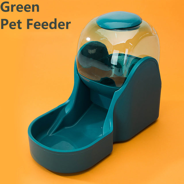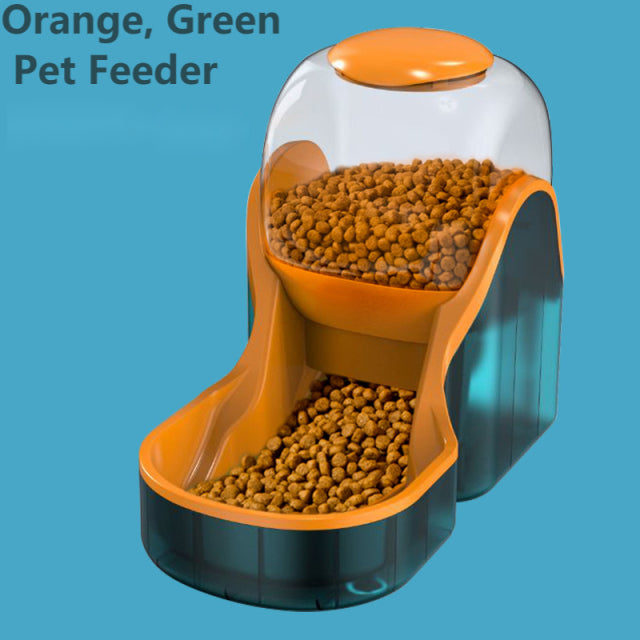 A pet feeder and water dispenser set for dogs and cats of all sizes. It is made of PVC+ABS and comes in orange, green, and purple. It is an automatic feeder with a large capacity.