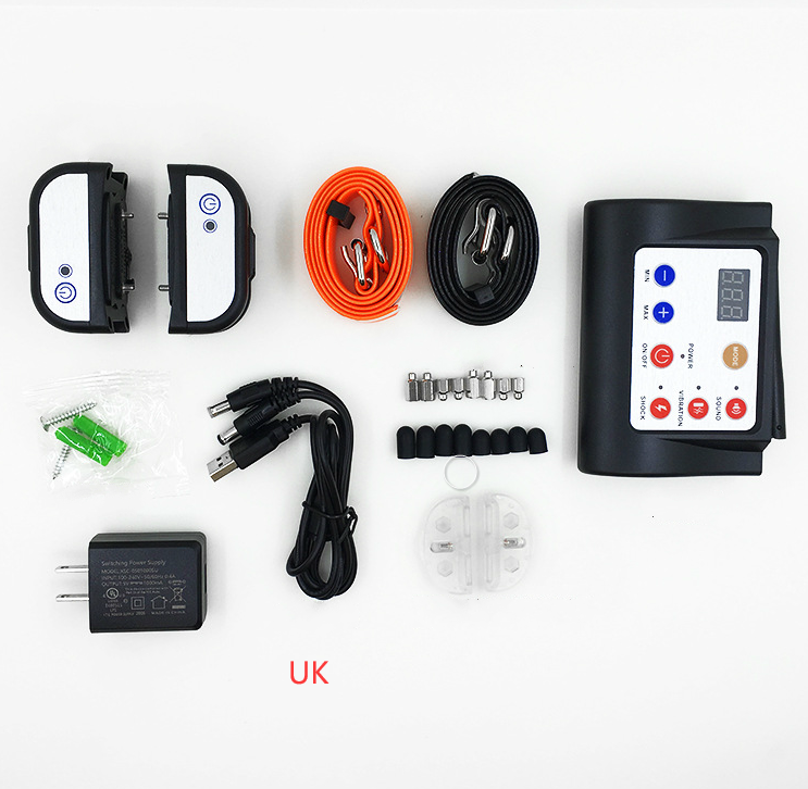 Pet fence system with 2 in 1 function: LED display, pet wireless fence and remote control sound vibration shock trainer