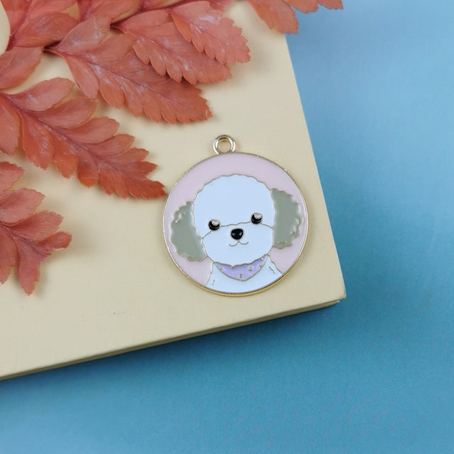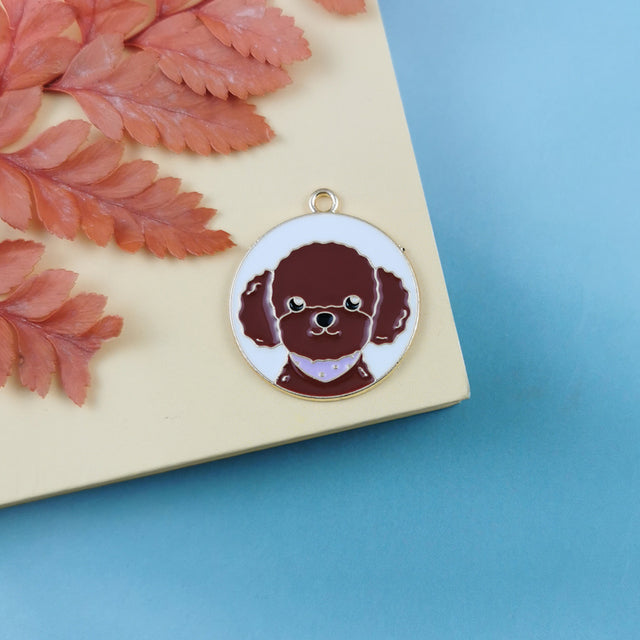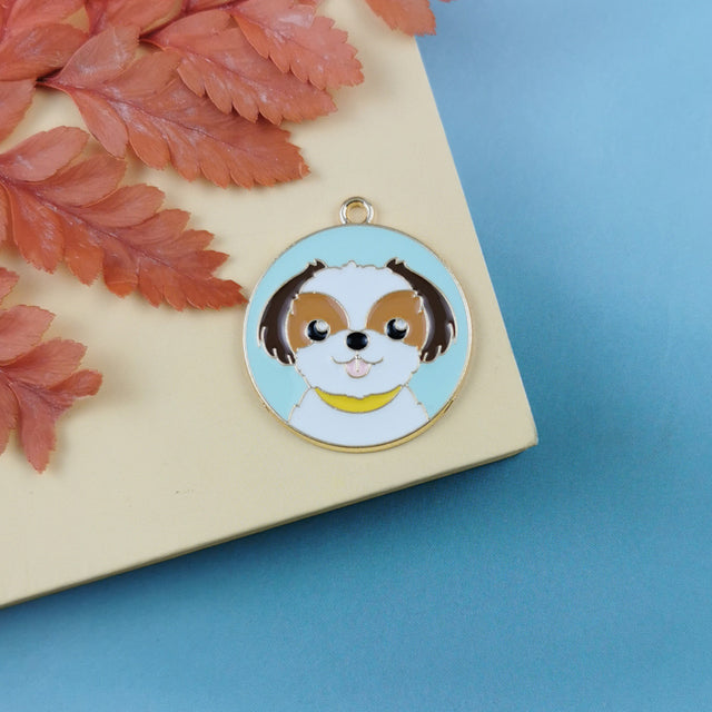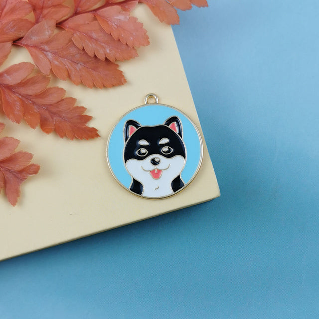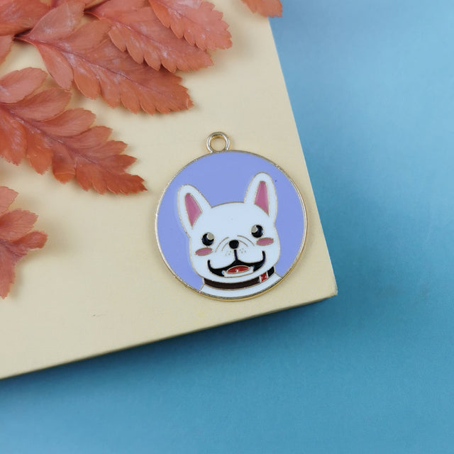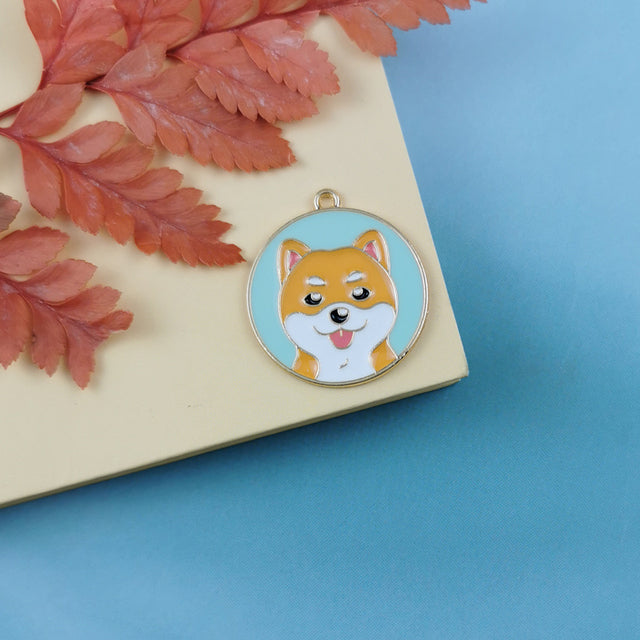 10 Pieces Enamel Cute Dog Tag Charms Round Cartoon Bulldog Teddy Shiba Animal Pendant Bracelet Earrings Jewelry Making Accessory