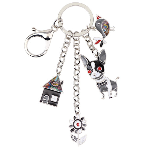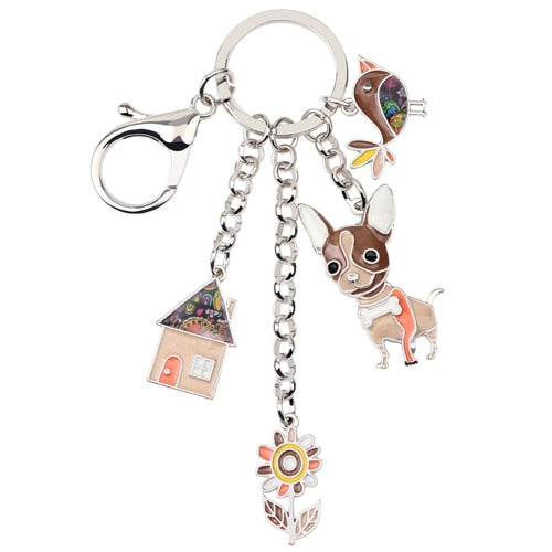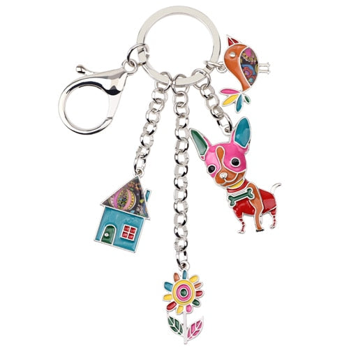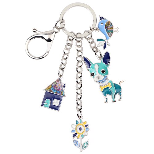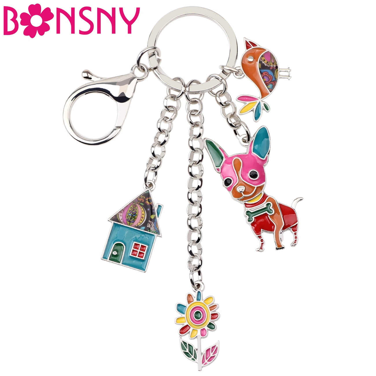 Bonsny Enamel Metal Chihuahua Dog Bird Flower House Key Chain Keychains Ring Bag Charms Car Holder Jewelry For Women Girls Gifts