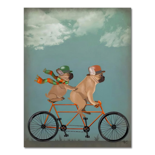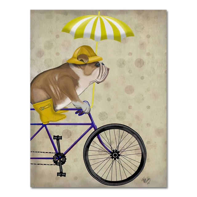Not only do these prints showcase the lovable English Bulldog breed, but they also feature other animal subjects, such as bicycle dogs, to add variety to your collection. These animal-themed canvas prints are perfect for dog lovers and art enthusiasts alike.