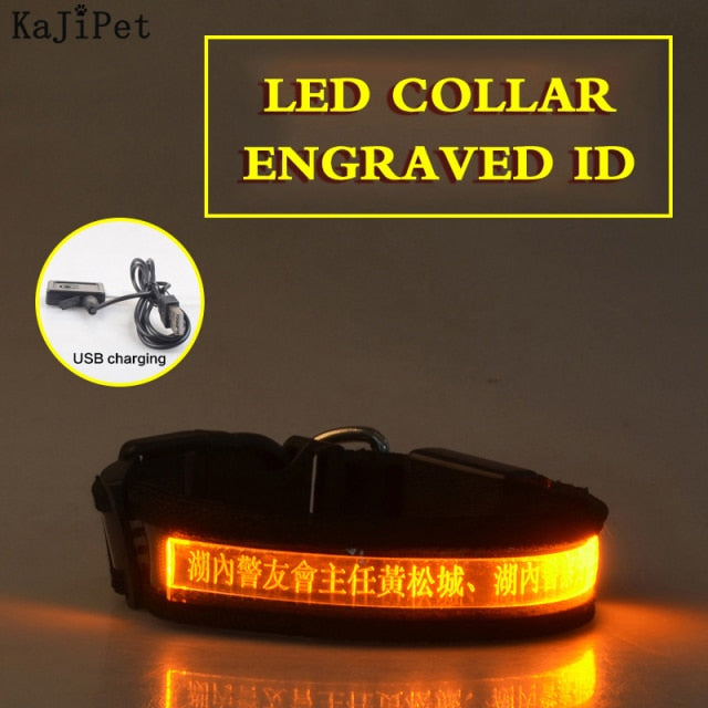 Engraved ID LED Dog Collar Luminous USB Custom Dog Tag Personalized Nylon Pet Dog Collar Led USB Light Night Safety Collar Perro