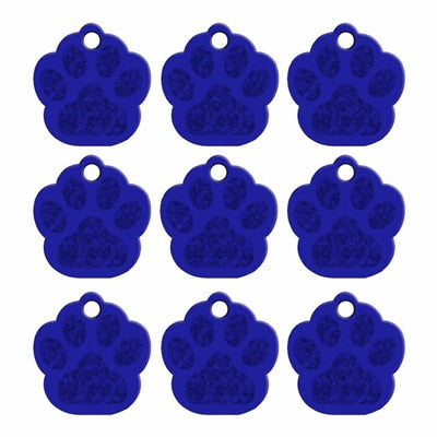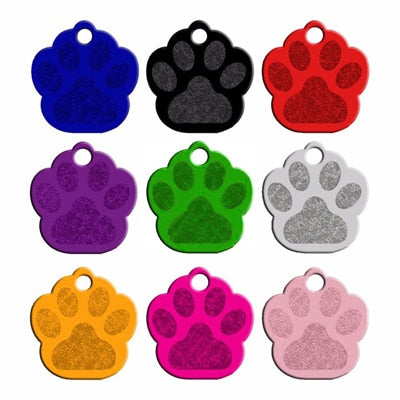 An ID tag for pets that is made of aluminum and comes in various colors. It is not a smart device but is customizable and features reflective material and personalization. The tag is in the shape of a paw and is intended for use as a collar accessory for dogs and cats. It is sold wholesale.