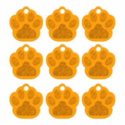 The tag is in the shape of a cute paw, making it a stylish accessory for both dogs and cats. It easily attaches to your pet's collar, adding a touch of sparkle and personality to their look.