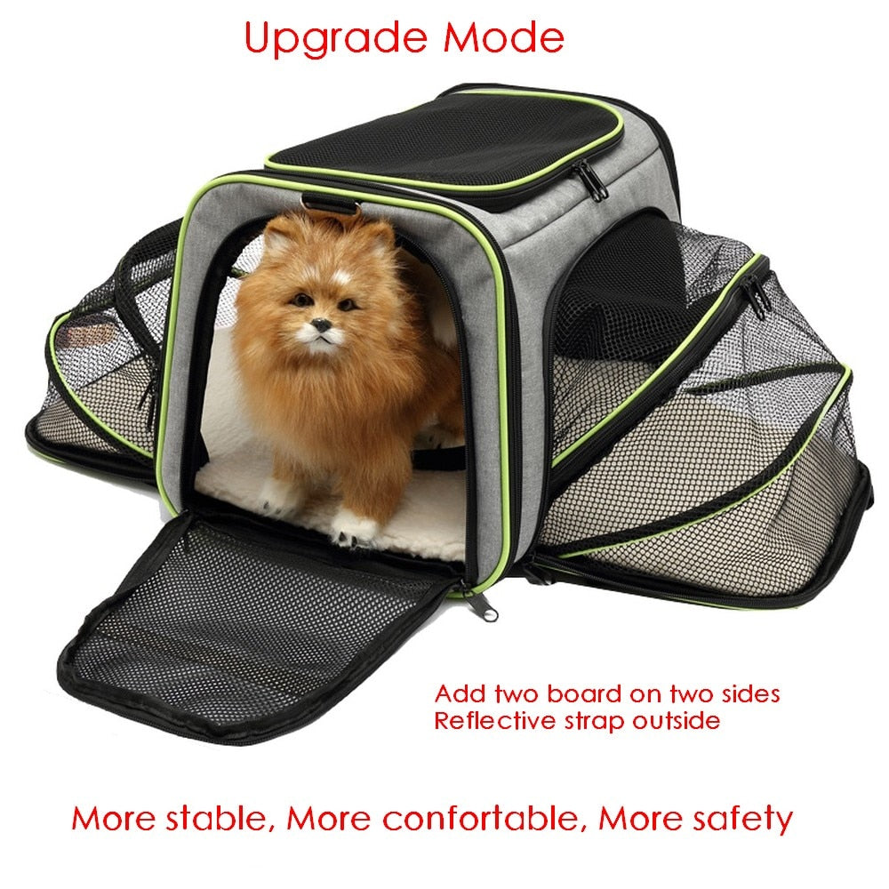 Expandable Pet Dog Cat Carrier Tote Soft Crate Airline Approved Kennel Car Vehicle Travel Two Side Expasion Easy Carry Luggage