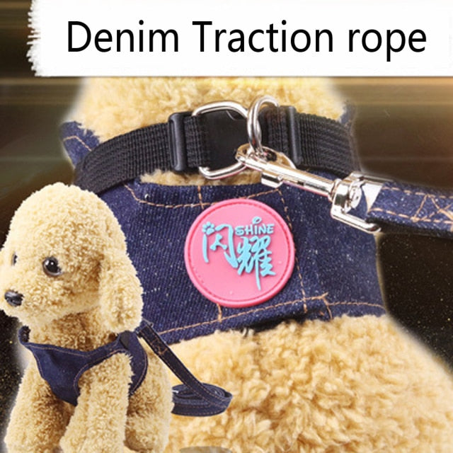 A stylish and comfortable harness for your small dog? Look no further than our adjustable fashion dog harness with leash! Made from high-quality jean material, this vest-style harness is perfect for all seasons and features a breathable design that keeps your pup cool and comfortable. With a quick-release buckle and personalized print pattern, this harness is both practical and stylish. Suitable for a variety of small breeds, including Chihuahuas, Pugs, and Bichon Frises, this dog accessory is perfect for walking, hiking, and other outdoor activities. So why wait? Get your furry friend the best in pet supplies and order your fashion adjustable dog harness today!