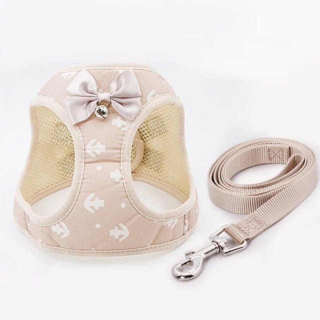 Fashion Anchor Cat Harness Vest Breathable Mesh Dog Harness Leash Set with Bell Cute Bowknot Accessories for Small Dogs Kitten