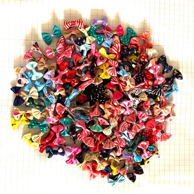 Color Random Dog Kitten Puppy Cute Pet Grooming Floral Solid Cotton Bow Flower Hairpins Butterfly Hair Clips Hair Barrette